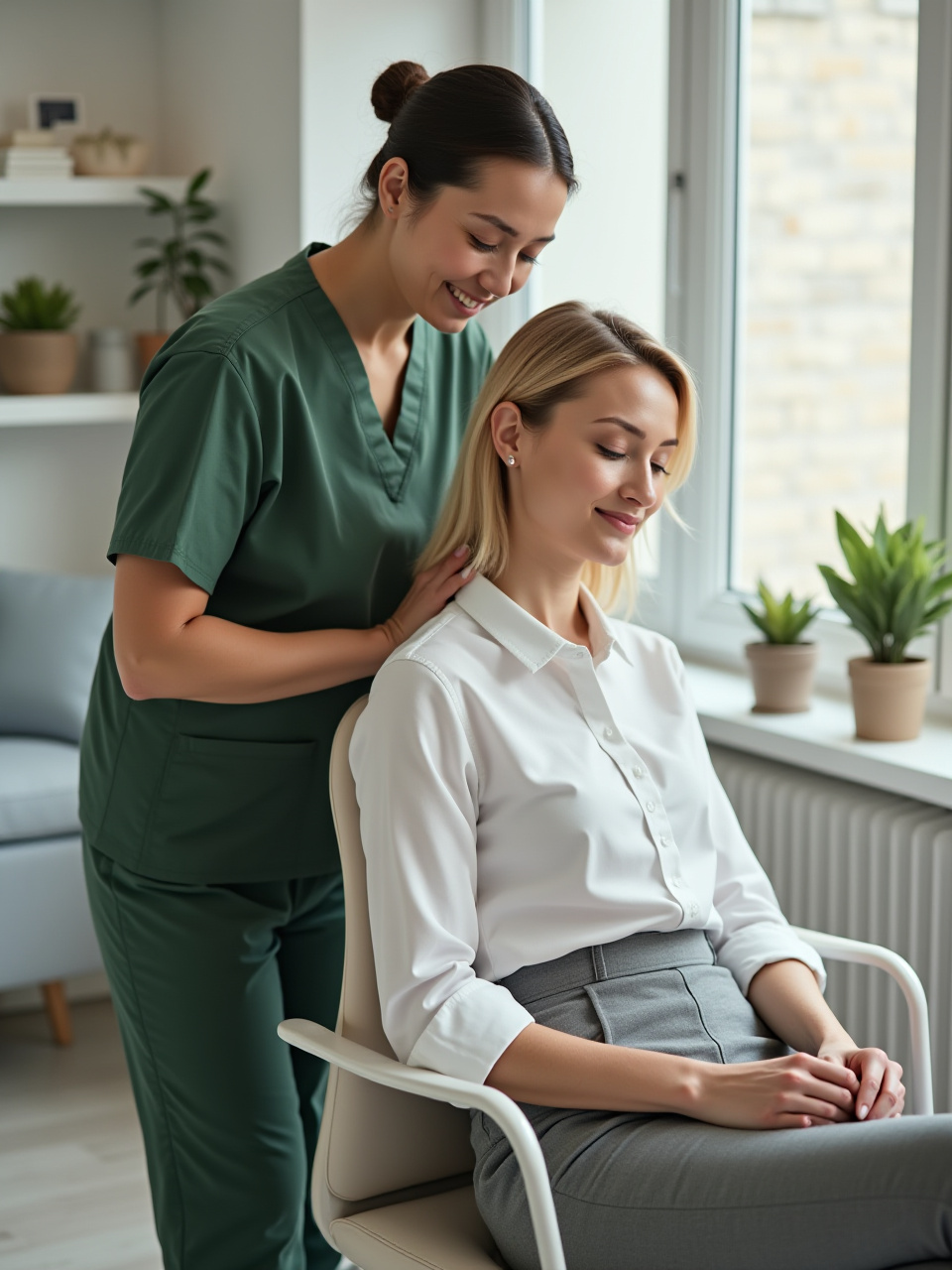 The Seated Massage is a quick, convenient, and highly effective way to reduce stress and physical tension without interrupting the workflow. Designed specifically for the corporate environment, this fully-clothed massage targets key tension areas such as the neck, shoulders, back, and arms, which are often strained due to prolonged sitting, repetitive tasks, and daily work pressures.